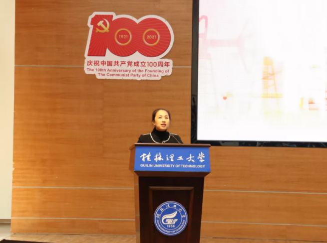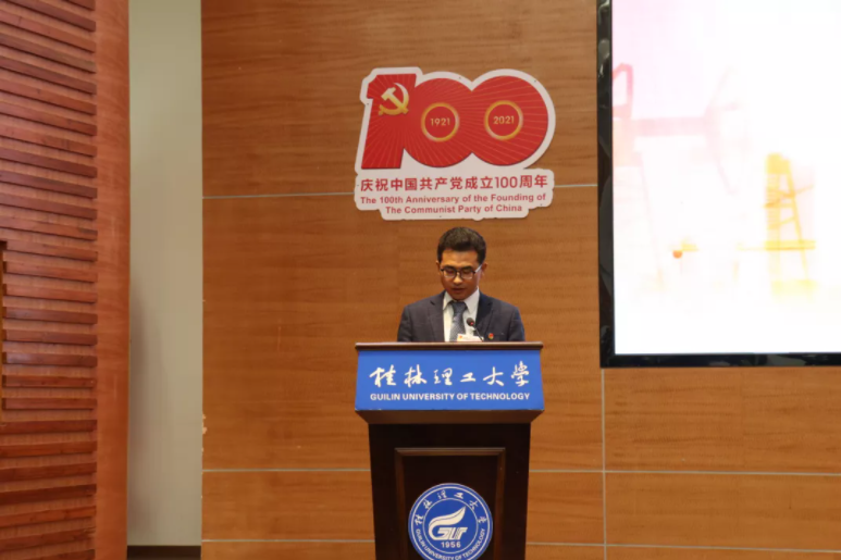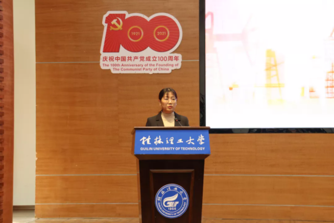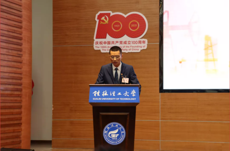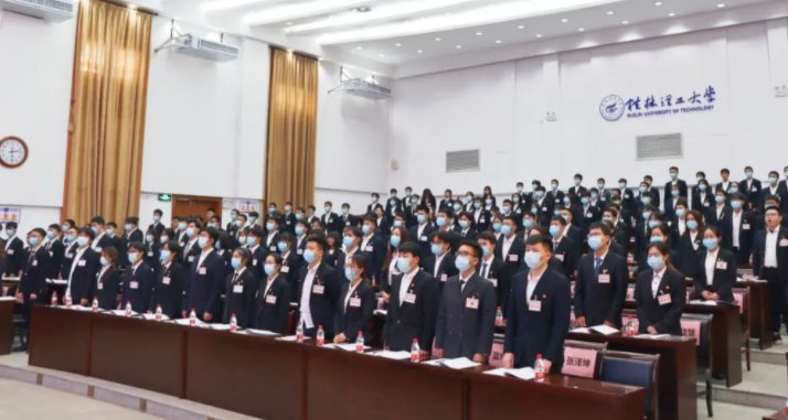 学校学生会主席团成员吕思佳同学对此次大会致贺词,代表桂林理工大学学生会向大会的召开表示热烈的祝贺,希望广大青年学子要肩负起历史使命、坚定前进信心、立大志、明大德、成大才、担大任,努力成为堪当民族复兴重任的时代新人。