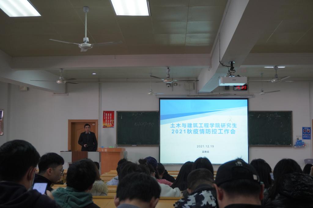 夏勇超老师对当前疫情防控工作要求进行了详细的布置,并针对违反疫情防控要求的典型案例进行了通报,叮嘱研究生同学坚持钉钉打卡,用自己的实际行动筑牢疫情防控的城墙。夏老师还对医疗保险购买、考风考纪、宿舍关系等方面内容进行了强调。
