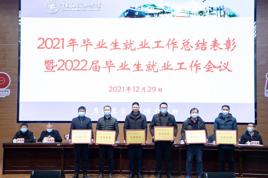 会上,学校党委副书记齐俊斌宣读了学校对2021年毕业生就业工作先进集体、先进个人和2021年征兵工作先进集体的表彰决定。土木与建筑工程学院、化学与生物工程学院、旅游与风景园林学院、测绘地理信息学院、机械与控制工程学院、南宁分校等6个单位荣获“2021年毕业生就业工作先进集体”荣誉称号;旅游与风景园林学院、材料科学与工程学院、土木与建筑工程学院等3个单位荣获“2021年毕业生就业工作就业进步奖”荣誉称号;夏勇超等7位同志荣获“2021年毕业生就业工作先进个人”荣誉称号。