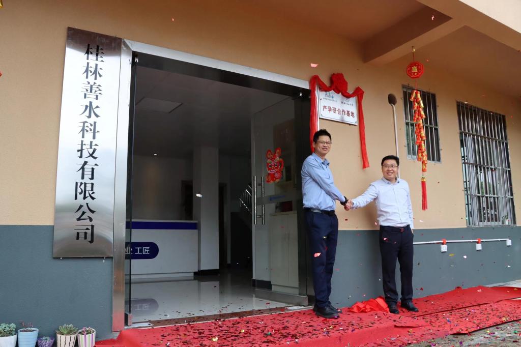桂林善水科技有限公司的负责人也在致辞中表示,此次产学研基地的成立,有助于推进校企形成科技交流与合作,促成先进资源的共享及技术成果高效转化;通过共建产学研示范基地,在校企双方人才多维度交流合作的同时,企业也将借助校方教学优势,加强人才培养,提升企业团队综合竞争力。