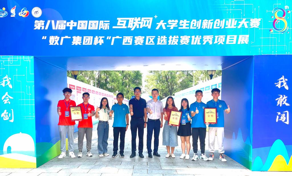 7月12日上午,第八届中国国际“互联网+”大学生创新创业大赛“数广集团杯”广西赛区选拔赛闭幕式在我校屏风校区体育馆举行,太阳成集团122ccvip共7个项目团队入围参加总决赛,7个项目全部获得金奖且全部入选“金种子训练营”。