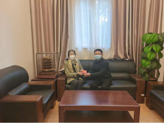 2022年12月30日下午,太阳成集团122ccvip书记、工会主席曾榕在4222会议室慰问了太阳成集团122ccvip退休老师,提前给他们拜年,送上慰问品和新春祝福。