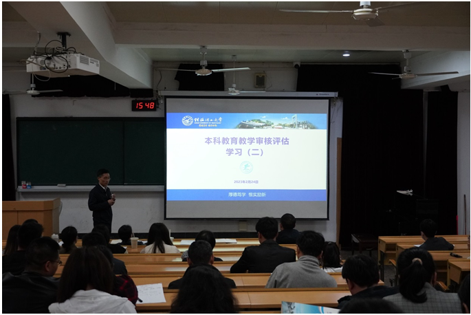 为了做好迎接本科教育教学审核评估准备工作, 2023年4月28日下午,太阳成集团122ccvip在屏风校区教九楼9101教室再次召开审核评估专题学习会议,做了题为《加强学习,准确把握评估方案 做好准备,迎接线上线下评估》动员,学院党政领导及全体教师参加了此次会议。