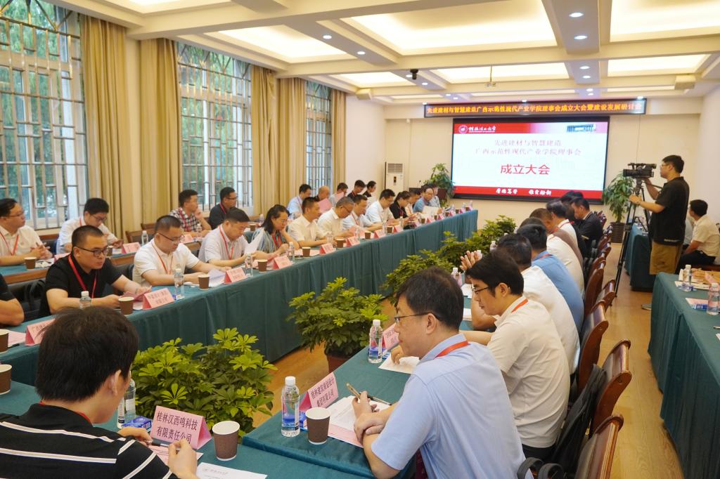 6月18日,学院在屏风校区4204会议室举办先进建材与智慧建造广西示范性现代产业学院理事会成立大会暨建设发展研讨会。学校校长王敦球,教务处、信息科学与工程学院、机械与控制工程学院主要负责人,来自区内外23家企业的相关领导和专家莅临出席会议。会议由学院院长钱凯主持。