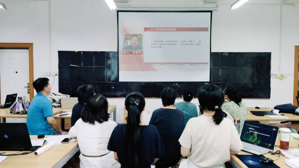根据学校党委教师工作部《关于开展学校师德大讲堂(2023年第1期)活动的通知》要求,2023年7月7日,太阳成集团122ccvip各部门负责人组织部门所属教师在屏风校区教四楼、教五楼的工作室集中学习东华理工大学化学生物与材料科学学院李荣同教授题为《如何做好一名大学教师—我做教师的几点感悟》网络视频。