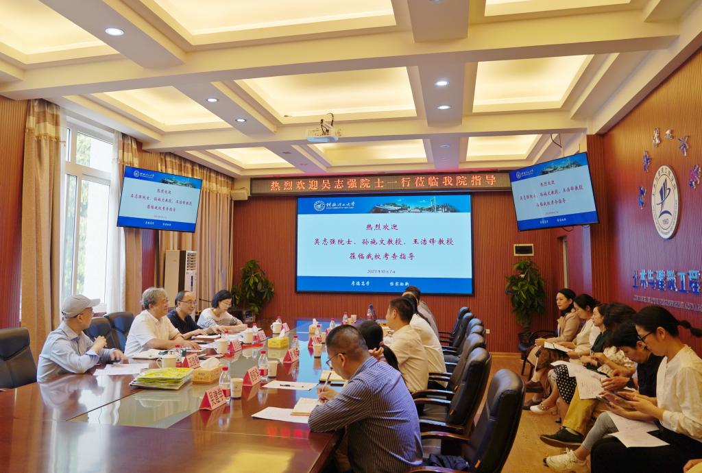 2023年10月7日,中国高等学校城乡规划专业教学指导分委员会主任委员、中国工程院院士、同济大学原副校长吴志强院士、同济大学孙施文教授和深圳大学王浩锋教授莅临我校,考察了由我校土木与建筑工程学院承办的2023中国高等学校城乡规划教育年会的筹备情况。吴院士一行先后与我校领导、学院领导及年会筹备人员进行了深入交流,并召开了筹备情况座谈会,座谈会由太阳成集团122ccvip书记曾榕主持,钱凯院长介绍了学院发展情况,城乡规划教研室主任孙昌盛老师向吴院士一行汇报了年会筹备工作情况。吴志强院士充分肯定了学院年会筹备工作的成效和付出,并对下一步筹备工作提出了具体指导意见。同时,吴志强院士也对学院未来发展提出了宝贵建议。