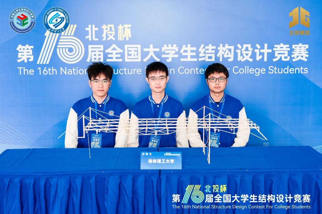 10月25日,第十六届全国大学生结构设计总决赛在长沙理工大学盛大举行,本届比赛由全国581所高校、1465支参赛队伍选拔产生清华大学、同济大学、哈尔滨工业大学、上海交通大学等118所高校119支精英队参加总决赛,参赛规模为历届之最。由我校土木与建筑工程学院张研、李丽两位老师指导的飞虹队,队长何威承,队员梁振喆、钟梦成代表广西区参加本次比赛,经过为期5天的激烈角逐斩获一等奖,结构模型成绩位列全国第24名,在广西参赛队中排名第一,也是广西参赛队唯一获一等奖的队伍。这也是我校自参加本项赛事以来的又一大突破。