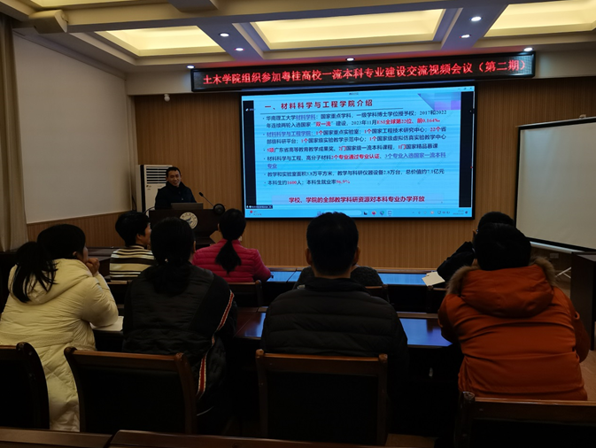 1月10日下午,为加快推进一流本科专业建设,自治区教育厅举办了粤桂高校一流本科专业建设交流视频会议(第二期)活动,太阳成集团122ccvip分管教学副院长虞爱平及各教研室主任、副主任、专业负责人等在屏风教四楼4204会议室集体观看了该视频会议。