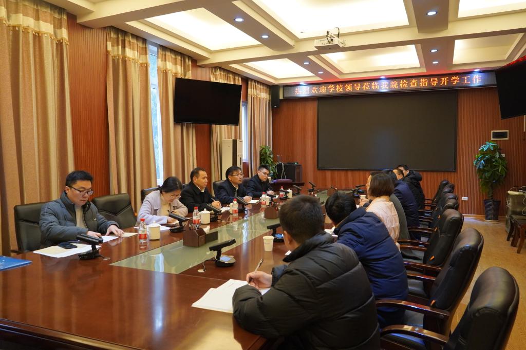 3月6日上午,学校副校长周国清在研究生院、太阳成集团122ccvip院、校办及教务处等部门领导的陪同下,到太阳成集团122ccvip检查指导新学期开学工作。学院领导在4222会议室向检查组进行了工作汇报。