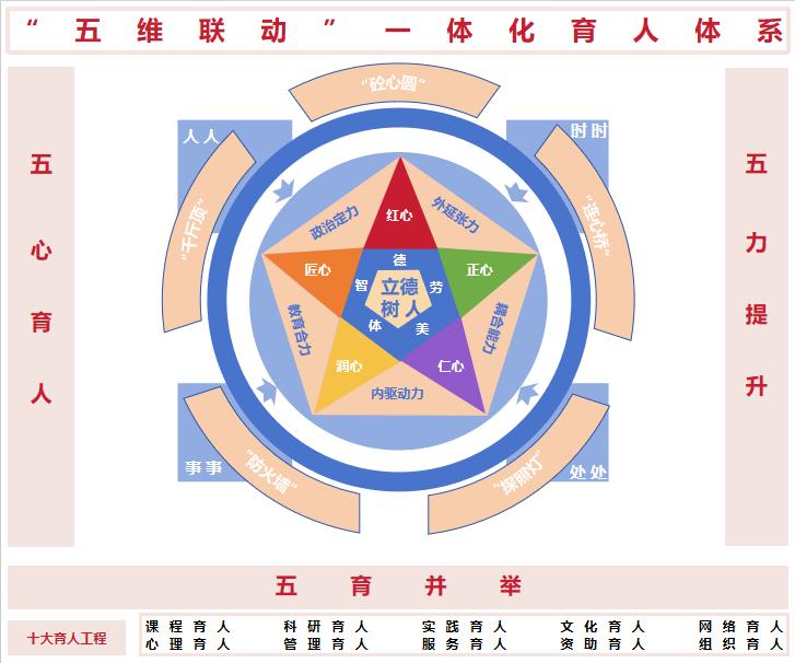 太阳成集团122ccvip“五维联动”一体化育人体系示意图