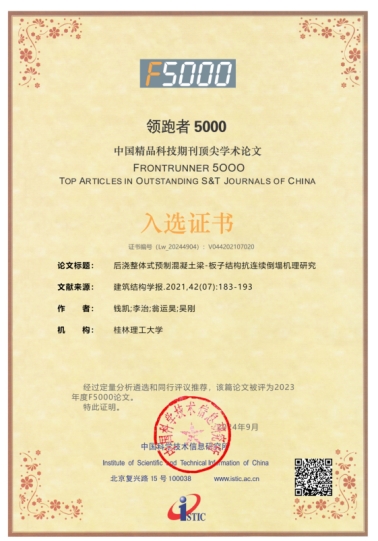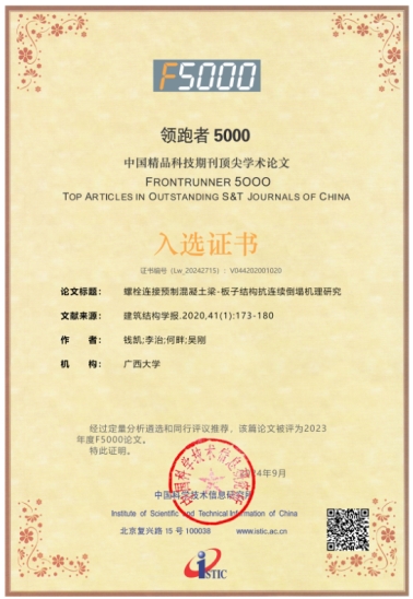 近日,国家科技部中国科学技术信息研究所(中信所)发布了2024年“领跑者5000——中国精品科技期刊顶尖学术论文(F5000)”入选论文名单。F5000的评选过程非常严格,采用定量分析和同行评议相结合的方式。评选标准包括:论文必须发表在中国精品科技期刊上,并且是各学科被引次数排名前1%的论文。每种精品期刊从5年间发表的论文中择优选取不超过20篇作为提名论文,再经过进一步遴选才能成为F5000论文。