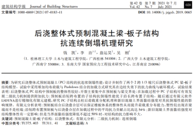 论文标题:后浇整体式预制混凝土梁-板子结构抗连续倒塌机理研究