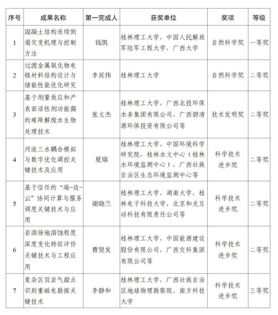 我校2024年度广西科学技术奖获奖清单