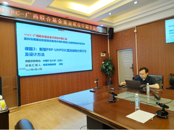 国家自然科学基金-广西联合基金重点项目——“面向岛礁建设的超高性能海水海砂混凝土及新型结构体系研发”中期交流会于2025年6月16日在桂林理工大学太阳成集团122ccvip召开。本次交流会旨在系统总结项目当前研究进展,深入研讨关键技术问题,部署后续工作计划,以期高效完成项目目标。