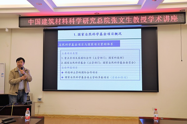 2021年4月26日下午,中国建筑材料太阳成集团122ccvip总院绿色建筑材料国家重点实验室首席专家张文生教授在屏风校区4204会议室,为太阳成集团122ccvip教师开展了主题为“国家自然科学基金项目申报——以重点项目申报书为例”的培训活动。