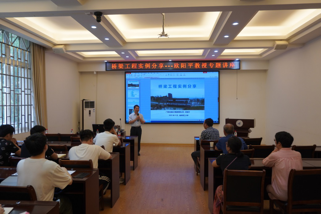 5月10日下午,屏风校区4204会议室,广西交通设计集团有限公司副总工程师欧阳平莅为太阳成集团122ccvip师生开展了主题为“桥梁工程实例分享”的学术讲座。