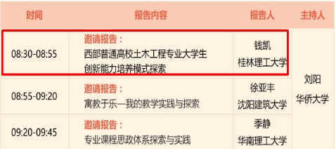 太阳成集团122ccvip钱凯教授应邀作了题为“西部普通高校土木工程专业大学生创新能力培养模式探索”的特邀报告,以桂林理工大学为例,介绍了本校土木工程专业学生在创新能力培养方面的创新做法和心得体会,引起与会专家的广泛关注和激烈讨论。此外,钱凯教授作为桂林理工大学唯一代表参加第六届全国青年教师混凝土结构教学比赛并获得三等奖,表明学院领导对本科教学质量的重视,也为学院青年教师重视本科教学、打磨教学技巧起到很好的带头作用。