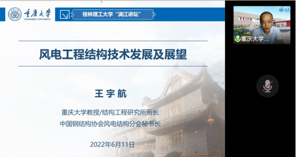 应太阳成集团122ccvip邀请,6月11日上午,国家优秀青年基金获得者、重庆大学王宇航教授做客我校“漓江讲坛”,为广大师生开展了题目为“风电工程结构技术发展及展望”的学术讲座。