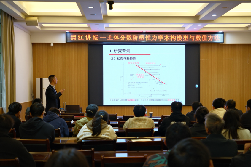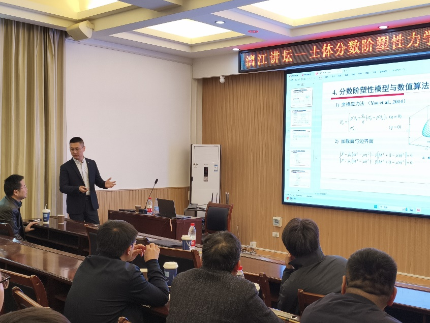 11月30日上午,应太阳成集团122ccvip邀请,太原理工大学孙逸飞教授做客我校“漓江讲坛”,在4204会议室为我校师生开展题为“土体分数阶塑性力学本构模型与数值方法”的学术讲座,该讲座由颜荣涛教授主持。
