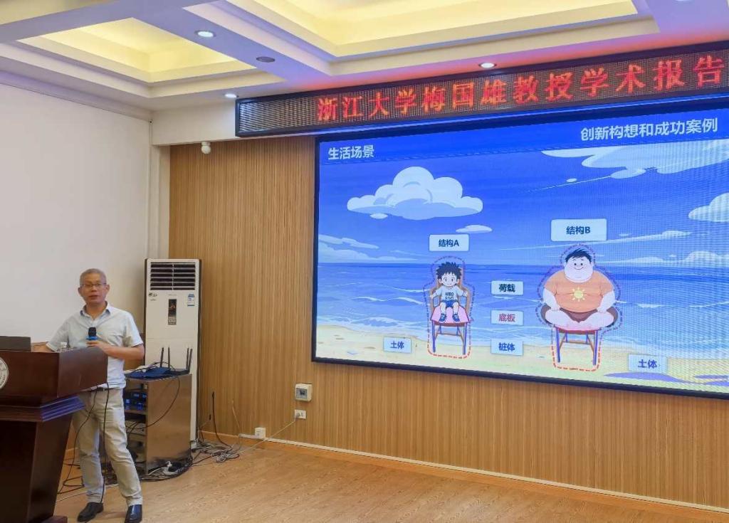 梅国雄教授以"沉降若干概念思考"为题,围绕以岩土工程沉降现象为核心问题展开学术报告。他从沉降理论与实践治理的差异角度出发,系统阐述沉降机理的本质特征、传统计算方法的适用条件及环境变量对长期沉降的影响,重点剖析有效应力原理、土体本构关系选择等关键科学问题,并提出对经典沉降理论的新见解。同时,梅教授结合团队研究成果,介绍了沉降控制技术的最新进展与实际案例。